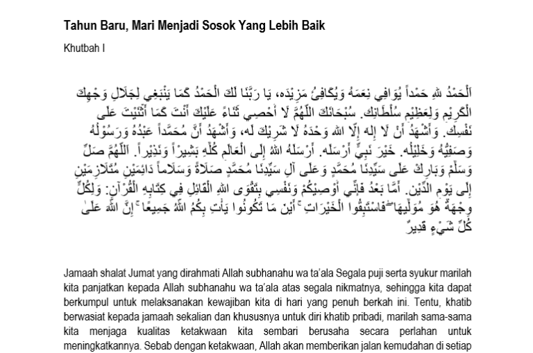 Naskah Khutbah di Hari Jum’at minggu terakhir pada bulan Desember 2022 kali ini mengenai Bagaimana kita menjadi sosok yang lebih baik. Jika sahabat dtangsel ingin mencetak Naskah Jum’at kali ini silakan klik tombol paling bawah untuk menyimpannya dalam bentuk file pdf.